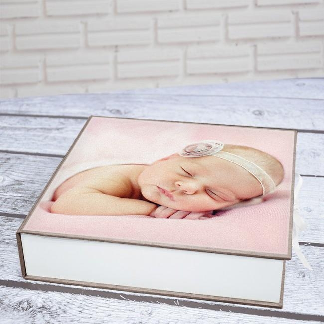 Caja en lino jaspeado con foto o tapa lisa sin foto, tamaños 25x25, 24x30, 30x30, 30x20 y 40x30, con 3 colores a elegir: