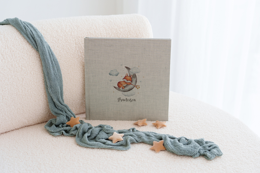 Álbum en una sola pieza en material con grabado UV en la parte central de la tapa que fusiona lo visual y lo táctil.