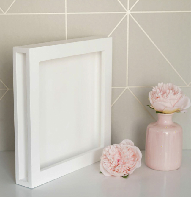 Caja marco en madera blanca.